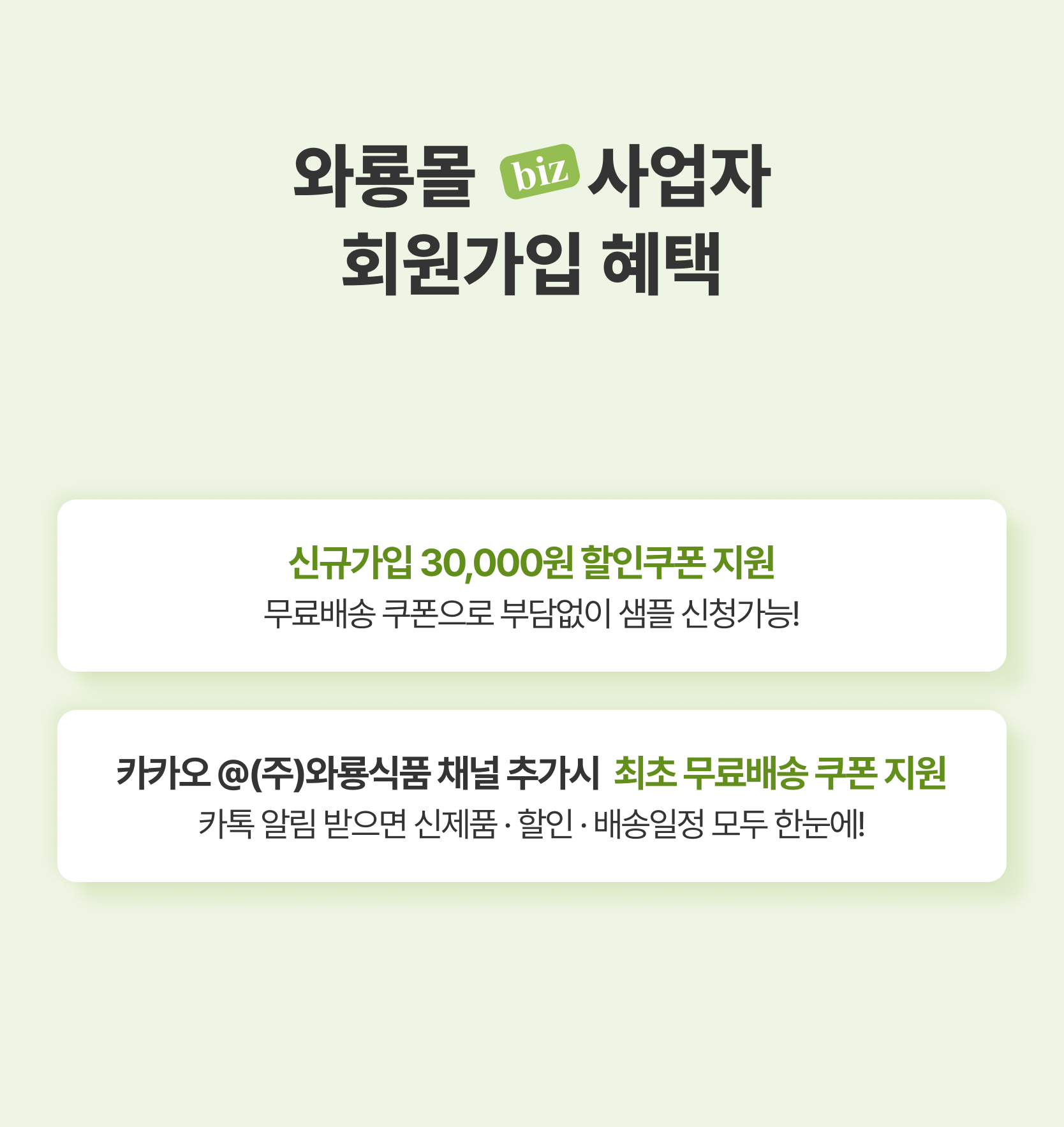 주식회사 와룡식품 사이트의 상품/판매자/쇼핑정보, 컨텐츠, UI 등에 대한 무단 복제, 전송, 배포, 스크래핑 등의 행위는 저작권법, 콘텐츠사업 진흥법 등에 의하여 엄격히 금지됩니다.