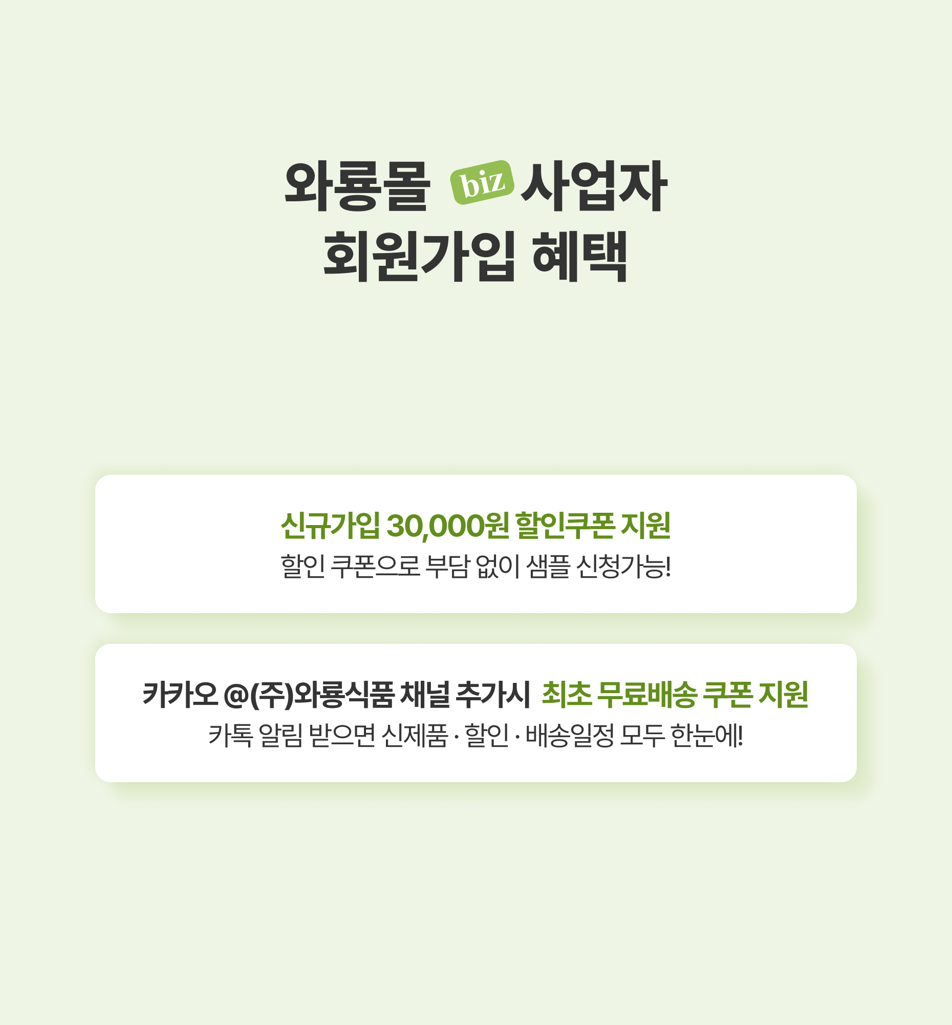 주식회사 와룡식품 사이트의 상품/판매자/쇼핑정보, 컨텐츠, UI 등에 대한 무단 복제, 전송, 배포, 스크래핑 등의 행위는 저작권법, 콘텐츠사업 진흥법 등에 의하여 엄격히 금지됩니다.